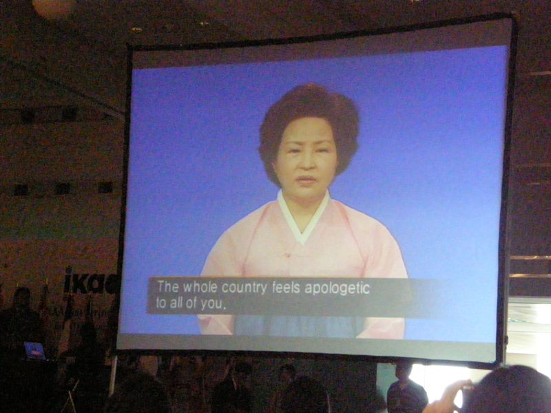Like any big conference, the first morning breakfast or opening ceremony typically involves a lot of official peoples in suits giving official speeches. The IKAA opening ceremony was no different. Thanks to technology and the willingness to be on the big screen, the First Lady of South Korea, Mrs. Kwan Yang-Suk, delivered a video message to the audience (see still above). In 2004, her greeting was read to us, so this was a welcomed opportunity to see and hear her message more personally.