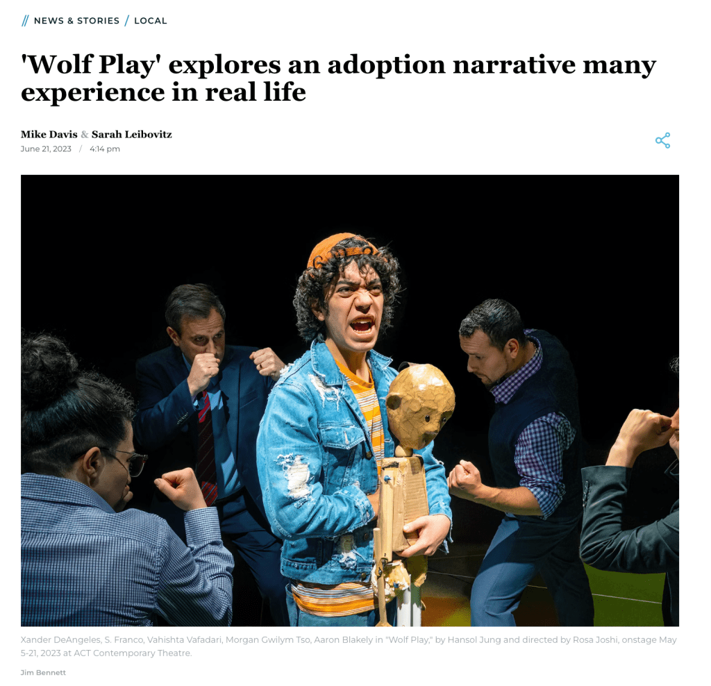 In case you missed it, I spoke about the challenges of researching adoption in an interview with Mike Davis at KUOW. The interview aimed to understand the context of a play, Wolf Play, by Hansol Jung, in which a Korean adoptee takes on the alternate persona of a wolf as he navigates being re-homed by his first adoptive parents. In the interview, I discuss re-homing and how difficult it is to really understand how and why adoptions break down. Angela Tucker speaks on the challenges of transracial adoption.