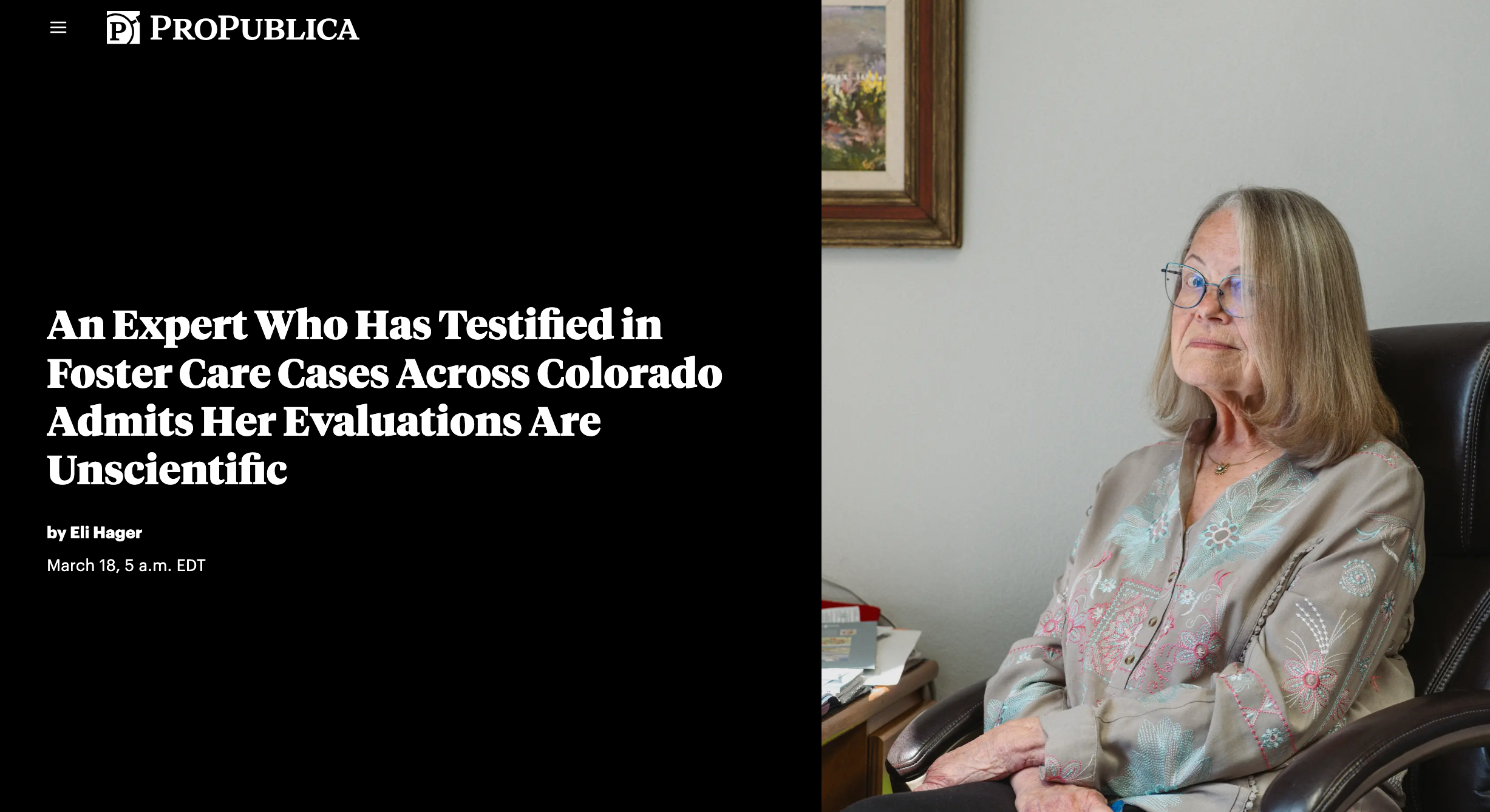 The second thing I read over the past couple of days was this disturbing Pro Publica article about a child welfare expert who used a self-created assessment tool that has come under scrutiny because it is biased and has been used in court cases to favor foster and adoptive parents over first/birth families.