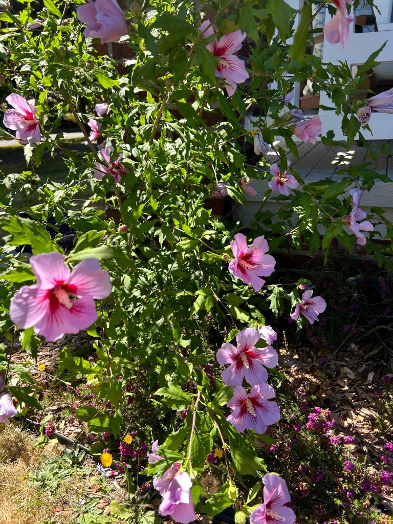 When I arrived home from my final summer conference my mungunghwa bush (the Korean national flower) was absolutely bursting with blooms.
